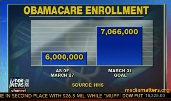 Hemmer said, “You might have seen a graphic on the Obamacare signup numbers. Here is what that graphic should have looked like…That was our mistake. Correction noted.”