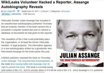 According to WIRED, Canongate-published The Unauthorised Autobiography of Julian Assange discloses that a WikiLeaks staff member may have broken the law by hacking into “a journalist’s computer system last year to retrieve a database of documents he had given to the reporter.”