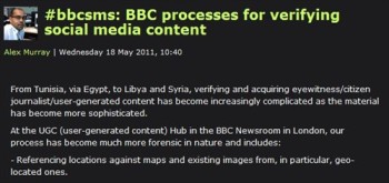 The BBC College of Journalism blogged about how it checks out social media provided information. Some of the ways the BBC checks includes checking weather, accents, language and locations against maps and informed references.