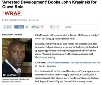Oops! Yahoo News wrongly used a picture of director John Singleton with a news story about The Office actor John Krasinski joining the upcoming season of Arrested Development.