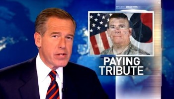 Williams reported on the retirement of U.S. Army Major Tim Terpak and his reunion with Terpak at a New York Rangers hockey game. He said on air that there was a “terrible moment a dozen years back during the invasion of Iraq,  when the helicopter we were traveling in was forced down after being hit by an RPG.”