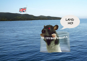 A Pre-enactment of the cannibal rats fleeing the ghost ship for the shores of Great Britain. Photo Illustration by London Shearer Allen (Photo Credit: Matthieu Aubry. and Peter aka anemoneprojectors – camera busted! Via Flickr, Edal Anton Lefterov and Wollex via Wikipedia)