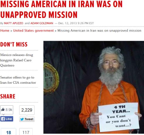 Last month, the Associated Press reported that Robert Levinson, an American man who went missing in Iran in March 2007, wasn’t on a business trip but was actually working for the Central Intelligence Agency. Levinson “was working for the C.I.A. … to gather intelligence from some of the world’s darkest corners,” the AP reported. “He vanished while investigating the Iranian government for the U.S.”