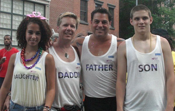 Robert and Michael, “together 34 years,” thank Governor Cuomo for supporting gay marriage. June 24, 2012, Gay Pride Parade, New York City. (Credit: London Shearer Allen/iMediaEthics)