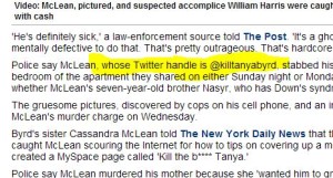 iMediaEthics suspects the Daily Mail got the botched spelling from the New York Post, which as we wrote earlier this week misspelled Mclean's first name in a story and photo caption related to Mclean.