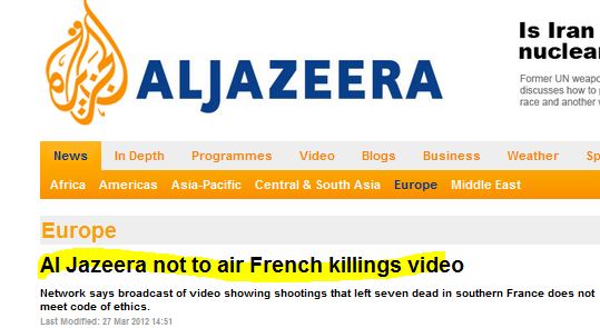 According to Al Jazeera’s statement on the matter, the network decided against airing the video because doing so would conflict with its ethics code. (See here Al Jazeera’s ethics code.) The statement reads: