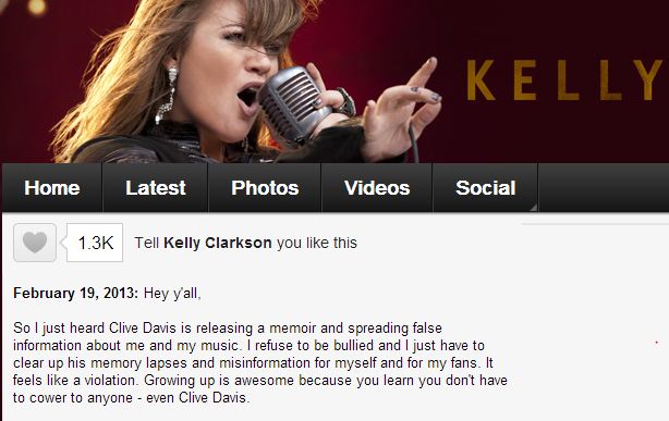 ESPN site Grantland questioned Sony Music’s Chief Creative Officer Clive Davis’ claim of fact checking in his recently published memoir. Davis’ book, The Soundtrack of My Life, described what he said happened in the production of some of Kelly Clarkson’s music. Shortly after the memoir was published, Clarkson challenged Davis with a statement online calling his version of events “misinformation” that “feels like a violation.”