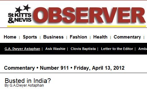 Michael’s letter is published in full on Caribarena.com. According to the letter, Michael’s complaints are over Dwyer Astaphan’s article “Busted in India?” for SKNVIBES.com and for St. Kitts and Nevis Observer. The claims were also published in April 14’s News Pages and April 16’s Caribarena.com. The article is published here on the St. Kitts and Nevis Observer’s website.