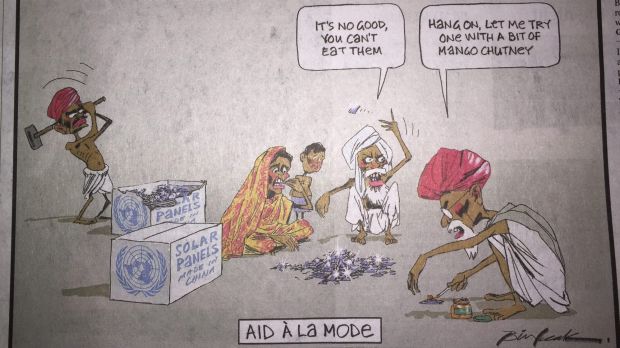 The Australian, which is owned by News Corp., defended its cartoon to the press council as mocking “climate change activists who would send poor people solar panels rather than give them something they needed — cheap power, aid and assistance,” the press council wrote. Since the cartoon was published during the UN Climate Change Conference last year, when an author and academic had discussed a specific case where a town in India was sent solar panels, the Australian argued it was clearly focused on climate change and not Indians.