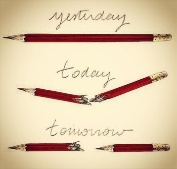 The cartoon showed three pencils – one unbroken pencil labeled yesterday, one broken pencil labeled today, and two sharpened pencils labeled today.