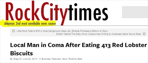 Satire site RockCitytimes published a phony story claiming that food writer Kevin Shalin lapsed into a coma because he ate 413 biscuits. The UK Daily Mirror not only was hoaxed by the satire site, but wrote about the alleged coma without any attribution or credit for photos, information or quotes.