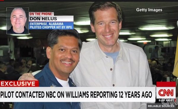 The pilot, Don Helus, told CNN’s Brian Stelter this weekend that he contacted MSNBC via e-mail in 2003 about Williams’ story being wrong.