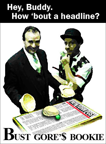 Writing an attention-grabbing headline is a sort of art, I suppose. But it takes a different kind of skill entirely to do what the New York Post recently did in an article titled Bust Gore$ Bookie: write a headline that deceptively inflates a bit of non-news into a page-three exclusive.