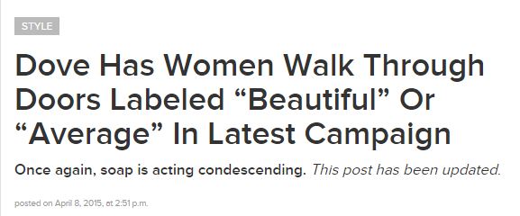 Gawker reported last night that an article by BuzzFeed beauty editor Arabelle Sicardi, “Dove Has Women Walk Through Doors Labeled ‘Beautiful’ Or ‘Average’ In Latest Campaign,” has been replaced with an “update” stating: “We pulled this post because it is not consistent with the tone of BuzzFeed Life.”