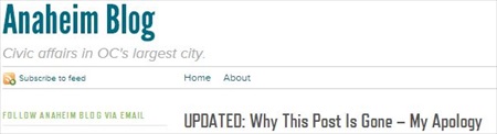 Blogger Matthew Cunningham unpublished a mean-spirited post on the Anaheim Blog after numerous complaints of racism, The Voice of OC‘s Adam Elmahrek reported.