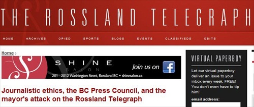 After being criticized by the local mayor, The Rossland Telegraph wrote that it follows the British Columbia’s Press Council‘s Code of Practice, even though it’s “not a member.”