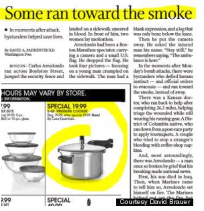 “The news content was related to the Boston Marathon bombing, including a graphic detailing a pressure-cooker bomb, while an advertisement by Macy’s included a pressure cooker as a sale item,” according to the April 18 apology signed by editor Paul Pronovost. The “unintentional” error was “an unfortunate juxtaposition,” Pronovost wrote.