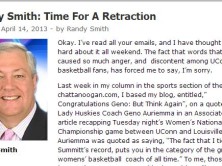 Chattanoogan.com blogger and veteran sports broadcaster Randy Smith retracted his April 10 blogpost, apologized for quoting Geno Auriemma, head coach...