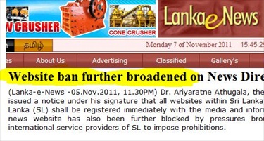 The ministry also called on Sri Lankan news sites to follow ethics codes and Sri Lankan laws. The Sunday Leader noted that “several websites” have been blocked recently including Lankae News and Sri Lanka Mirror. According to the Associated Press, in total five news sites have been censored “because they insulted key political leaders.”