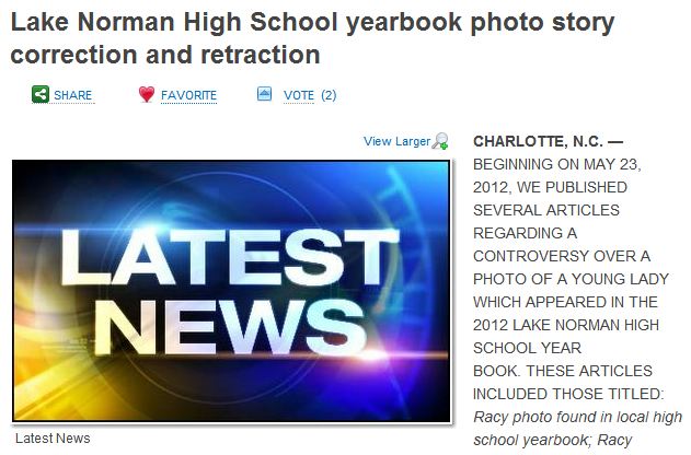 Charlotte, N.C.’s WSOC-TV 9 issued a correction, retraction and apology for mis-reporting that a high school student at the Lake Norman High School intentionally flashed the camera for a photo in the school’s yearbook.