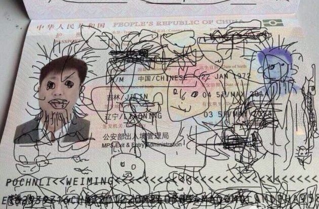 “Corrections and clarifications: The original version of this story stated a Chinese man was stuck in South Korea because his son had made drawings on his passport. A story update included speculation that the photo was fake, which later was confirmed by The Wall Street Journal, citing an official from the Chinese embassy in Seoul.”