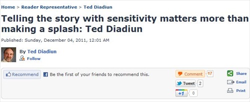 In a December column, Diadiun argued that the newspaper didn’t sensationalize the story. Instead of taking a sensational or superficial approach to the report, Diadiun said the Plain Dealer’s reporter, Rachel Dissell, took ” the time to apply extra reporting and sensitivity.”