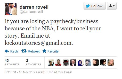 For Rovell’s story, Rovell had tweeted November 17 asking for readers “losing a paycheck/business because of the NBA” to contact him. A teenager Deadspin identified as Tim set up an e-mail account under the name Henry James and told Rovell via e-mail that the lockout was causing a “30 percent” drop in his New York-based “escort service.” Rovell cited the teenager’s prank e-mail interviews and identified him as “Henry.”