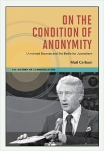 According to the St. Louis Post-Dispatch, which briefly wrote about a book by professor Matt Carlson, in which the author argues for transparency and named sources. The book, On the Condition of Anonymity: Unnamed Sources and the Battle for Journalism, is an academic book and highlights five journalism case studies involving anonymous sources, including the very high-profile cases of Deep Throat and Valerie Plame.