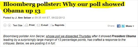 On June 20, Bloomberg released a new poll showing President Barack Obama leading Mitt Romney by 13 points, 53% to 40%, among likely voters. The very next day, AP released its new poll – conducted over virtually the same time period – showing Obama with a lead of just three points, 47% to 44%.