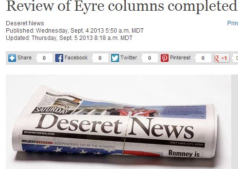 Jim Romenesko noted that Richard Eyre told the Salt Lake Tribune that he and his wife “write our columns as unpaid volunteers” but still “should have been more careful.”