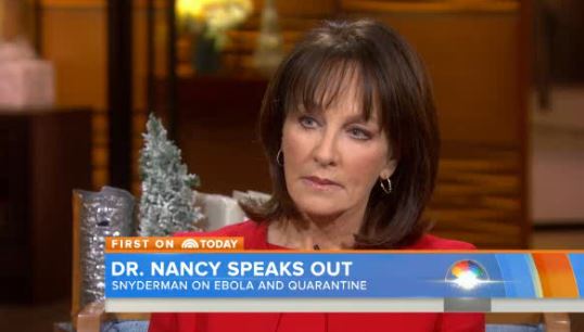 In her Dec. 3 on-air interview with Matt Lauer about the Ebola quarantine, Snyderman apologized: “I’m very sorry for not only scaring my community and the country, but adding to the confusion of terms that I think came as fast and furious as the news about Ebola did,”