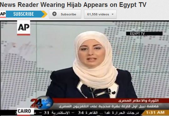 According to the Guardian, which posted a video of Nabil’s broadcast on state TV, “during the regime of ousted president Hosni Mubarak, state TV enforced a secular dress code on screen.” As the Associated Press explained, any “female TV employees” who wore a “head covering” “would be asked to take jobs away from the cameras.”