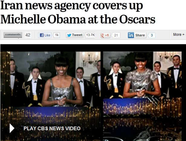 Iran’s Fars News Agency Photoshopped an image of Michelle Obama to cover up her bare shoulders. The New York Times describes Fars as “close to Iran’s powerful Islamic Revolutionary Guard Corps.”
