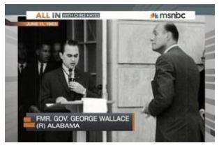 An MSNBC graphic wrongly said George Wallace — who was a segregationist governor of Alabama during portions of the 1960s through the 1980s, and a failed presidential candidate — was a Republican, when he was a member of the Democratic Party.