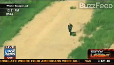 Fox News was showing a “car chase live in Arizona” when the man being chased “pulled his car over…left the car, then…pulled a gun out of his right pocket” and “pulled the trigger,” the New York Times explained.