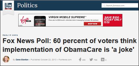 Had the question asked people to express in their own words how they felt about the rollout, no doubt only a small percentage would have actually volunteered they thought it was a “joke.” But by providing only that option opposite the option of “fine,” the pollster was able to make it appear as though a large majority of Americans feel the same way, apparently, as do the pundits on Fox.