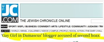 iMediaEthics wrote last month when the lesbian blogger Amina Arraf of “Gay Girl in Damascus” was revealed as a hoax sock-puppet identity for American man Tom MacMaster. But, MacMaster has been accused of hoaxing again, the Jewish Chronicle reported.