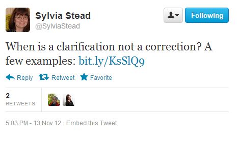 Globe and Mail public editor Sylvia Stead explained to readers recently how the Canadian daily newspaper differentiates between corrections and clarifications.