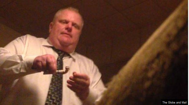 Globe and Mail reporters Robyn Doolittle and Greg McArthur reported last night about seeing a video clip of Ford “taking a drag from a long copper-coloured pipe, exhaling a cloud of smoke and then frantically shaking his right hand.”