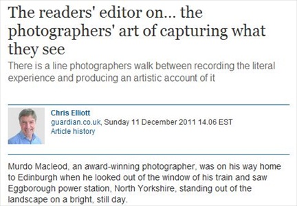 The Guardian’s readers editor, Chris Elliott, wrote Dec. 11 about issues in photojournalism ethics and altering images. “There is a line photographers walk between recording the literal experience and producing an artistic account of it,” Elliott argued.