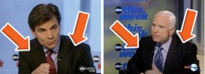 Dems see McCain’s pinlessness as deep hypocrisy: McCain criticized Obama for not wearing a flag pin, so, we’ll show him! This illogical and uninformed payback continues even though McCain never criticized Obama for not wearing a pin and, despite all the flag talk from both sides, clearly doesn’t make a point of wearing one himself.