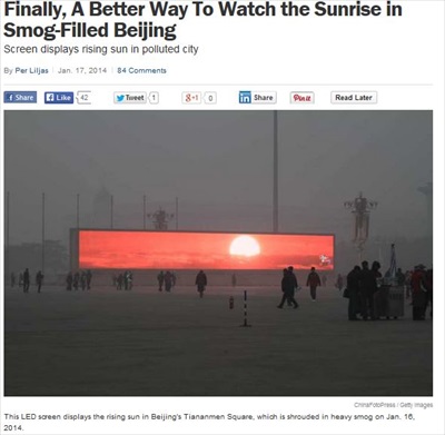 The Daily Mail story, published Jan. 16, is titled: “China starts televising the sunrise on giant TV screens because Beijing is so clouded in smog.” It reported that Beijing residents are watching “virtual sunrises” because the smog is so thick people can’t see the real sunrise.