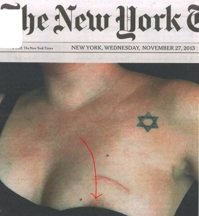 It shouldn’t go without notice that there is also a photo in the online version of a topless woman who has undergone breast reconstruction The caption reads: