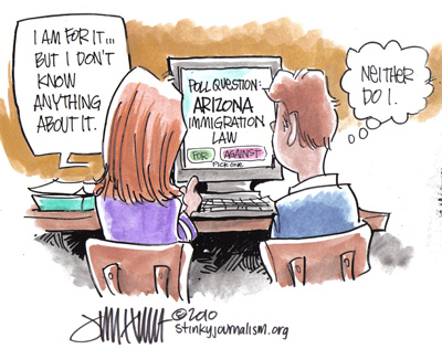 Fox News, for example, with their polling partner, Opinion Dynamics asked a national sample of registered voters not only whether they favored or opposed the new Arizona immigration law, but also gave respondents the explicit and honest opportunity to admit they didn’t “know enough about it to say.”