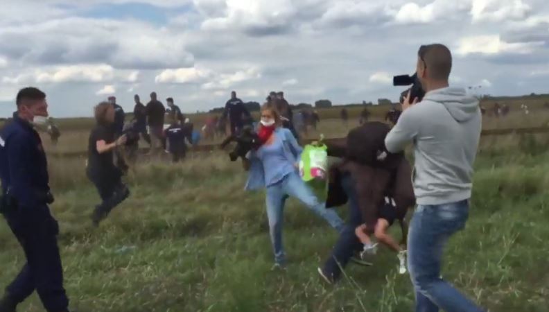 The station’s camera person, identified by news outlets as Petra László, was videotaped tripping refugees who were trying to flee the camp and police officers.