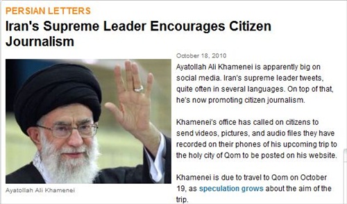 Even though citizen journalists were arrested last year after Iran’s presidential election, Iranian “spiritual leader and highest authority” Ayatollah Ali Khamenei’s office intends to host a citizen journalism website, Radio Free Europe Radio Liberty (RFERL) reported.
