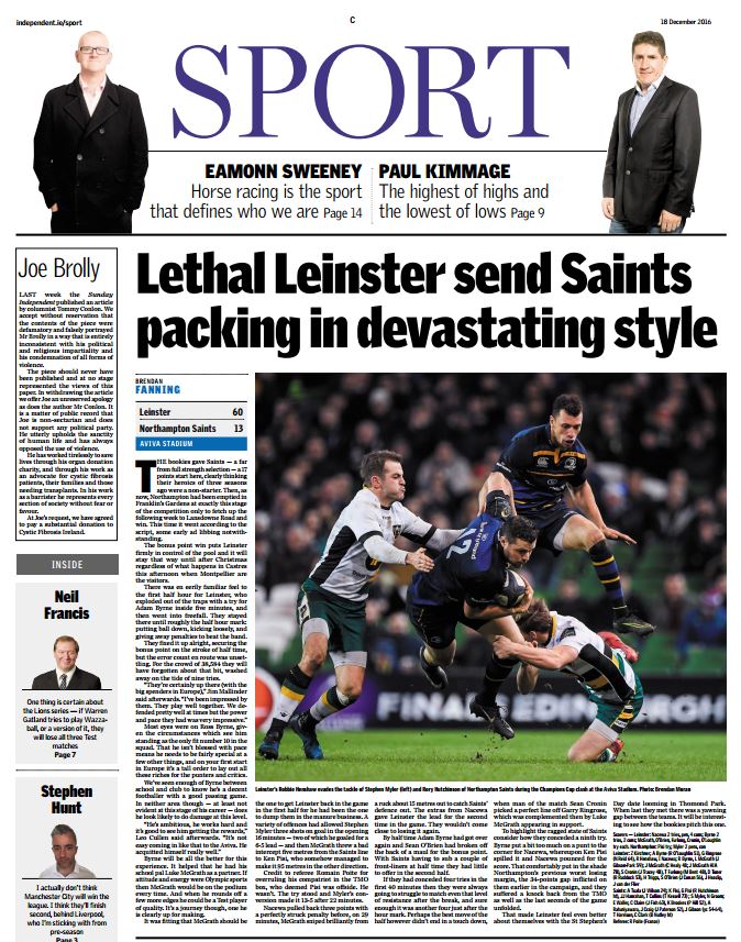 “Last week the Sunday Independent published an article by columnist Tommy Conlon. We accept without reservation that the contents of the piece were defamatory and falsely portrayed Mr Brolly in a way that is entirely inconsistent with his political and religious impartiality and his condemnation of all forms of violence.