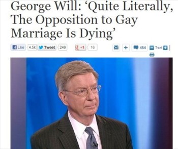 George Will commented last month on ABC’s This Week Sunday that “Quite literally, the opposition to gay marriage is dying. It’s old people.”