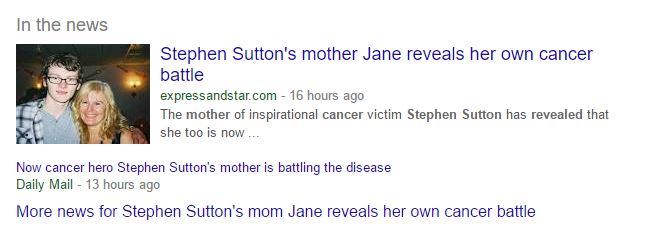 The Express & Star has deleted its article. A link to the UK Daily Mail’s article claiming Sutton had cancer has also apparently been deleted. See below Google search results showing the two article links. The Mail hasn’t responded to iMediaEthics’ inquiry.