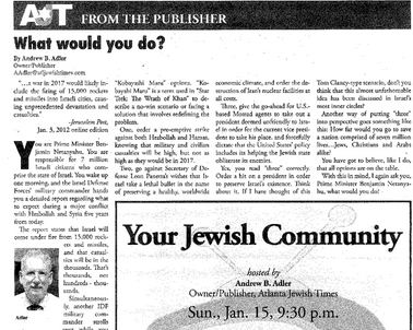 “Order a hit on a president in order to preserve Israel’s existence. Think about it. If I have thought of this Tom Clancy-type scenario, don’t you think that this almost unfathomable idea has been discussed in Israel’s most inner circles?…How far would you go to save a nation comprised of seven million lives…Jews, Christians and Arabs alike? You have got to believe, like I do, that all options are on the table.”